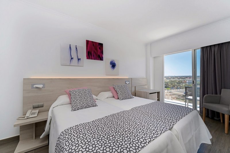 - 16-20 m², chambre double, étage, 5e, du haut, vue sur la mer (latéral), Draps, serviettes et matelas 100% coton bio, bureau, lits jumeaux, 1 salle de bain, douche, sèche-cheveux, climatisation, chauffage, mini réfrigérateur, coffre-fort (payant), 1 TV (TV par satellite, écran plat), Wi-Fi, balcon (meublé)