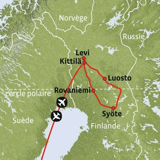 Vous reprenez la route pour rejoindre Kittilä. Vol de retour en Suisse dans l'après-midi.