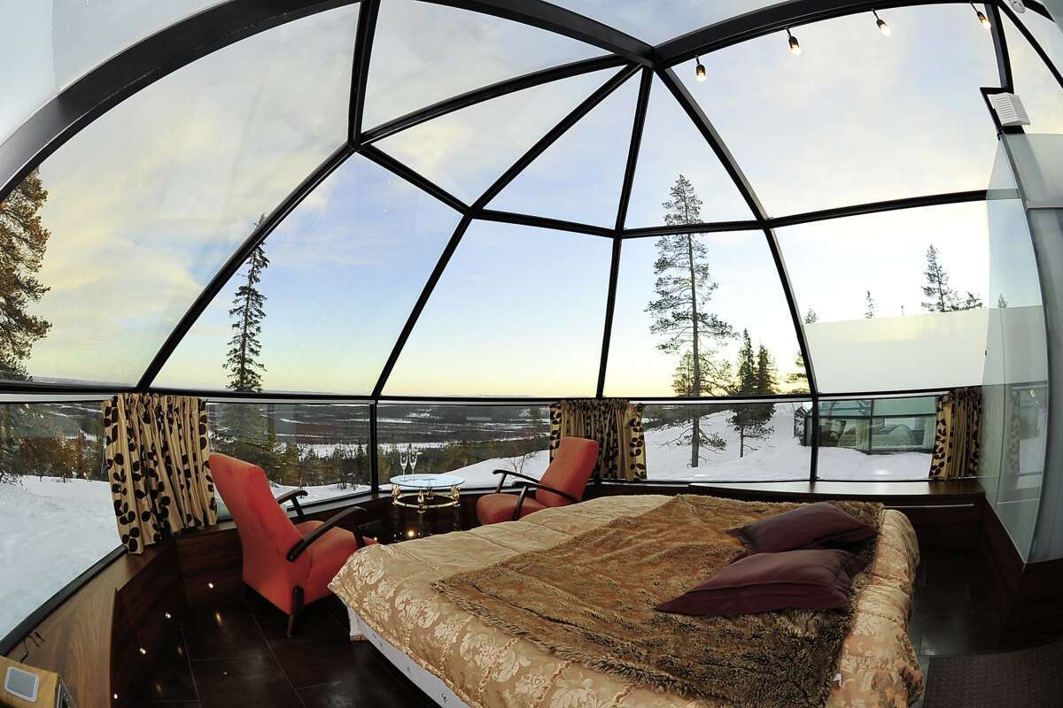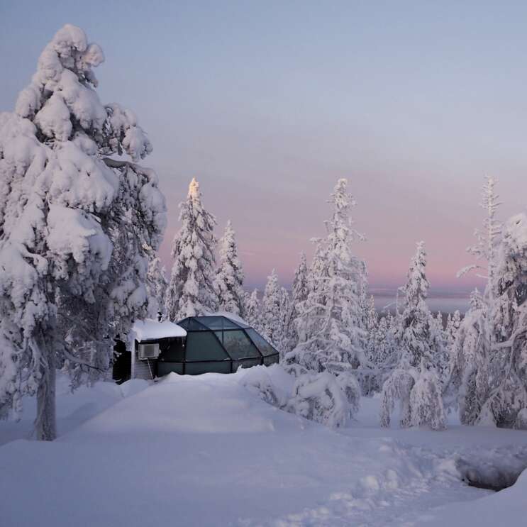 Vol à destination de Kittilä et prise en charge de la voiture de location. Vous roulez pour un court trajet jusqu'à la station de ski renomée de Levi où un point fort vous attend déjà: une nuitée dans un igloo de verre à Levi. Vous n'allez certainement pas oublier cette nuit de sitôt, surtout si des aurores boréales viennent à se montrer dans le ciel.