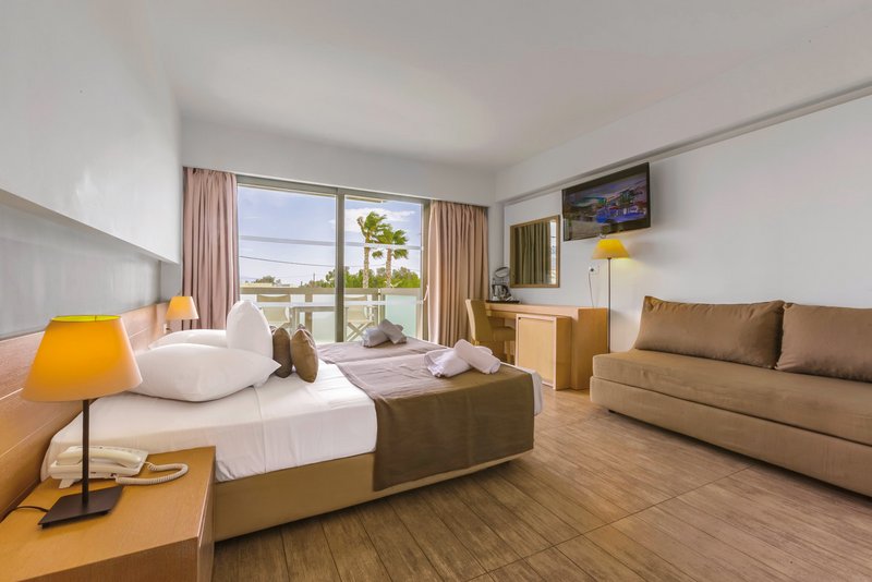- chambre double, vue sur la mer, 1 salle de bains, douche ou baignoire, 1 WC, sèche-cheveux, climatisation, minibar, remplissage régulièrement, bière, jus, vin maison, eau, coffre-fort, 1 TV (TV par satellite), bouilloire, balcon
