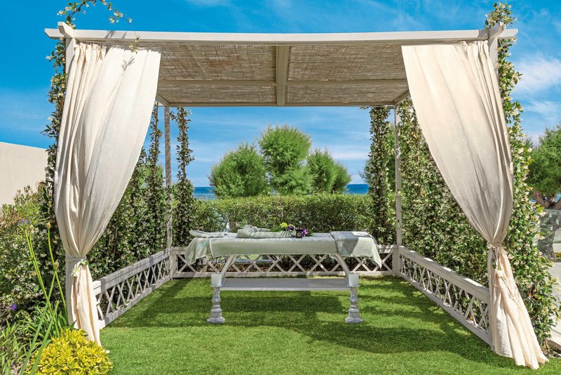- 31-35 m², vue sur la mer, 1 salle de bains, douche, WC, peignoir, chaussures de bain, sèche-cheveux, carrelage, climatisation, réglage individuel, env. 01.05.-31.10., coffre-fort, 1 TV (TV par satellite), téléphone, LAN, café/thé, réfrigérateur, terrasse, accès direct à la piscine, piscine partagée, esppace séparé à la plage, articles de bain de haute qualité, à l'arrivée en chambre eau