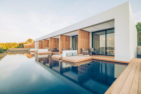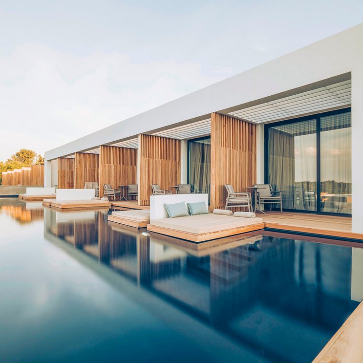 - 36-40 m², rez-de-chaussée, vue sur la mer (direct), douche, baignoire, WC séparé, peignoir, chaussures de bain, ventilateur, minibar payant, coffre-fort, 1 TV (TV par satellite), Wi-Fi, machine à café, terrasse, piscine privée