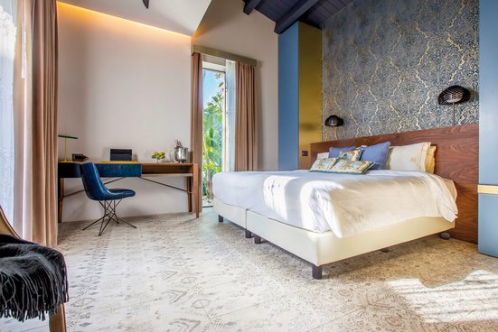 - 21-25 m², chambre double, vue sur le jardin, douche, WC, peignoir, chaussures de bain, sèche-cheveux, climatisation, env. 1.4.-31.10., chauffage, minibar payant, coffre-fort, TV (TV par satellite, écran plat), LAN, terrasse (meublé)