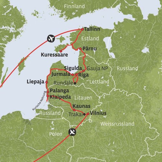 Il faut absolument vous arrêter pour faire un tour au musée de l’ambre à Palanga. Vous continuez ensuite votre voyage dans la ville portuaire de Klaipeda, où un bateau vous emmène sur l'isthme de Courlande. Vous passez deux nuits à Nida.