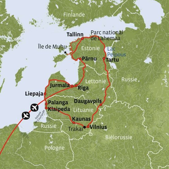 Le trajet vous mène vers le sud. Escale à Palanga, au plus grand musée d'ambre au monde. Avant de prendre le ferry pour arriver sur l'isthme de Courlande, vous avez encore l'occasion de faire un tour de ville de Klaipeda. Vous passez trois nuits à Nida.