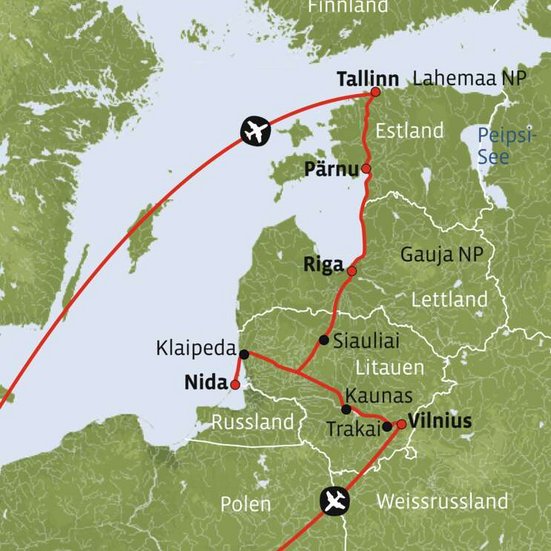 Sur la route vers Vilnius, il vaut la peine de faire une halte au magnifique château fort de Trakai. Votre dernière étape est Vilnius. Vous y découvrez de nombreux édifices gothiques, l'université et la porte de la ville. Deux nuitées à Vilnius.