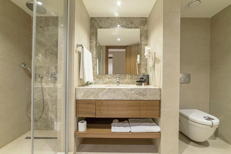 - 71-80 m², familles, vue sur la mer (latéral), 2 chambres à coucher séparées, 2 salles de bains, douche, baignoire, WC, chaussures de bain, sèche-cheveux, miroir cosmétique, climatisation, minibar payant, coffre-fort, 2 TVs (TV par satellite), bouilloire, café/thé, balcon ou terrasse (meublé)