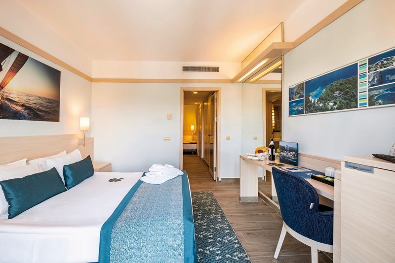 - 26-30 m², chambre double, vue sur la mer, lits double (1 lit queen-size ou 1 lit twin), douche, WC, sèche-cheveux, miroir cosmétique, climatisation, commande centrale, minibar, coffre-fort, TV (TV par satellite), bouilloire, café/thé, balcon