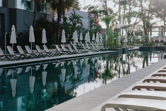 - 1 piscine : piscine de relaxation, parasols, transats, serviette de bain