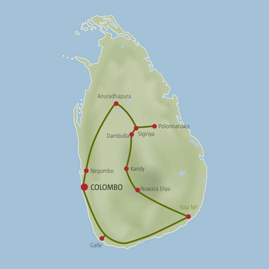 Un voyage digne d'une carte postale: profitez du meilleur du Sri Lanka et découvrez dans un cadre détendu les nombreux points d'intérêt de cet État insulaire. Vous voyagerez dans une voiture privée confortable et climatisée avec chauffeur et aurez tout le temps que vous souhaitez pour découvrir les facettes fascinantes du Sri Lanka. Vous dormirez dans des hôtels sélectionnés qui vous séduiront par leur charme et leur design unique.