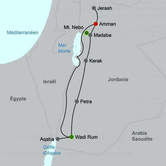 En un coup d’oeil, profitez de la vue qu’offre la place près de la citadelle. Le bus urbain s’y arrête – montez à bord pour descendre à votre guise aux ruines de l’amphithéâtre, à l’impressionnante mosquée Abu Darwish, aux musées, aux souks et aux galeries d’art. Aux portes de la ville se dresse le mont Nébo où la légende situerait la tombe de Moïse. Quoi qu’il en soit, vous aurez toujours vue sur la Terre promise à condition qu’il fasse beau.