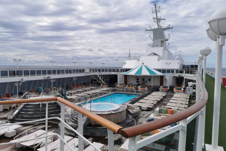 À peine arrivée dans l’atrium, je me suis immédiatement sentie entre de bonnes mains : à la réception, on m’a servi une coupe de champagne bien fraîche pour me rafraîchir en attendant ma carte d’embarquement. À première vue, l’intérieur du navire peut sembler un peu vieillot, mais il resplendit d’une élégance classique parfaitement rénovée. Gâtée par les nombreux nouveaux navires construits ces dernières années et dotés des détails les plus raffinés, assise dans le hall, je me suis demandé : « Combien de navires au design classique existe-t-il encore et faut-il toujours être moderne pour offrir une expérience de croisière inoubliable ? » La réponse m’est immédiatement venue à l’esprit : il ne faut pas toujours comparer – avec le boom actuel de la construction, un navire de style classique est presque redevenu une tendance en soi.