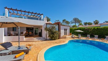 Nur einen kurzen Spaziergang vom goldenen Strand von Vale del Lobo entfernt, ist Casa da Praia ein charmantes Haus, das sich perfekt für das Leben im Freien eignet, mit mehreren Bereichen zum Entspannen und Essen im Freien. Dieser moderne, helle und luftige Villa ist in einem frischen weißen Dekor in sanften neutralen Farbtönen eingerichtet und verbindet traditionellen Charme mit modernem Luxus. Im Freien verfügt Casa da Praia über einen fabelhaften nierenförmigen Pool, der von vielen Liegestühlen umgeben ist, die von einem schattigen Essbereich im Freien mit einem tragbaren Grill heruntergehen. Eine Treppe von der Terrasse führt hinauf zu einer Sonnenterrasse mit herrlichem Panoramablick auf das Meer.Der offene Wohn- und Essbereich, der an eine gut ausgestattete Küche angrenzt, hat direkten Zugang durch eine verglaste Schiebetür zur Poolveranda. Alle Zimmer verfügen über Bad oder Dusche en suite. Ein Hauptschlafzimmer mit Doppelbett, ein Schlafzimmer mit Doppelbett und ein Schlafzimmer mit zwei Einzelbetten vervollständigen die Residenz. Casa da Praia ist nur einen Spaziergang von mehreren Restaurants auf dem Stadtplatz und nur 2,1 km von einem Supermarkt, dem Golfclub und ein paar weiteren Restaurants im belebten Badeort Vale do Lobo entfernt.