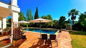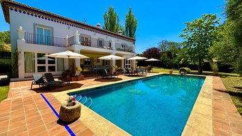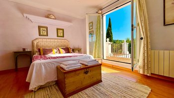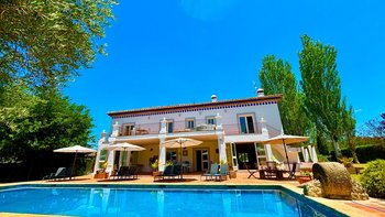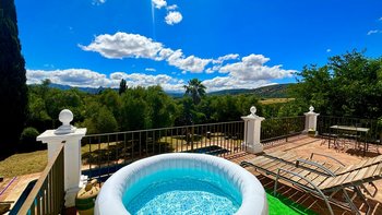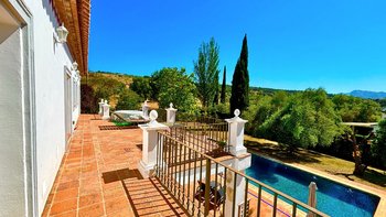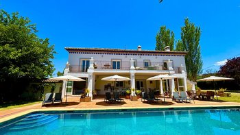 Die Finca la Alameda ist ein schönes altes Haus in einer ruhigen Landstraße im Llano de la Cruz-Tal. Sie ist wunderschön in einem frischen Landhausstil eingerichtet, der genau zu ihrer Lage passt. Dessen Erdgeschoß fließt durch weite Torbögen vom einladenden Wohnzimmer zum fröhlichen Essbereich, während französische Türen auf die Terrassen mit Blick auf den Garten führen, die zum Entspannen eingerichtet sind und voller Topfpflanzen sind, die Farbe und Charakter verleihen. Die Schlafzimmer sind groß und mühelos elegant, die meisten mit eigenem Bad oder Dusche und Zugang zu einer Terrasse oder einem Balkon. Zusätzlich zum 15 Meter langen Swimmingpool beherbergt das Grundstück Walnussbäume, nahegelegene Olivenhaine, einen Gemüsegarten und Fischteiche und einen herrlichen Blick auf die umliegenden Hügel. Auf beiden Seiten der Villa, jede mit eigenem Pool, konnten die kleineren Villen El Laurel und La Rondita zusammen gebucht werden, um einen ausgezeichneten Ort für eine große Gruppe zu bilden. Ronda ist nur 5 km entfernt für Geschäfte, historische Sehenswürdigkeiten und großartige Tapas-Bars.