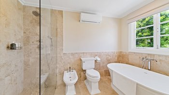 Vollendet auf höchstem Standard mit vielen Korallensteineigenschaften, beinhaltet das Haus; Klimaanlage im gesamten Haus und hervorragend ausgestattete Miele-Küche mit Granit-Arbeitsplatten. Coconut Bay wurde von der preisgekrönten Jenny Blanc Interiors nach höchstem Standard gestaltet. Dessen Haus hat ein luftiges tropisches Flair und strahlt Charme und Raffinesse ausund Die geräumige Terrasse und die umliegenden Bäume und spenden viel Schatten. Drei der Schlafzimmer haben Terrassen mit Blick auf den Poolbereich.