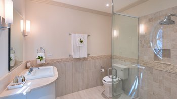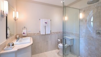 Die perfekt malerische Porters Villa ist ein bemerkenswertes Anwesen mit sehr geräumigen Zimmern und befindet sich in einem kleinen Privatanwesen in sehr weitläufigen Rasengärten. Deren Villa ist ein einstöckiger Rückzugsort mit einem authentischen Flügel, der Korallenstein und die Originalarchitektur an der Außenseite aufweist, sowie einem modernen Flügel, der vor kurzem hinzugefügt wurde, um ein geräumigeres Haus zu schaffen. Ein versunkener Eingang von einer weitläufigen Vorderseite und einem Garten mit Mahagonibäumen bietet ein gemütliches, aber schickes und modernes Interieur. Deren ursprüngliche Flügel des Hauses umfasst die Master Suite und das Wohnzimmer, beide mit gefliesten Böden und großen Fenstern, die ein lebhaftes, sonniges Ambiente schaffen. Der Master verfügt über ein Kingsize-Bett, eine Klimaanlage und einen Ventilator sowie ein eigenes Bad mit einem einzigen Waschtisch, einer gläsernen Dusche und einem sekundären Eingang, der in einen Flur mit einem großen Kleiderschrank führt. Der Master bietet auch Blick auf die üppigen Gärten und die Auffahrt der Villa.