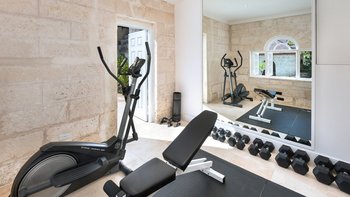 Das Wohnzimmer ist ein komfortabler Bereich zum Entspannen, komplett mit einer beruhigenden, modernen Einrichtung, einem großen bequemen Sofa, einem Arbeitstisch und Kabelfernsehen. Dessen Wohnzimmer öffnet sich dann zum neueren Flügel des Hauses, der das Esszimmer, die Küche und die verbleibenden zwei Schlafzimmer umfasst. Der Essbereich ist das Hauptstück des Hauses, mit quasi-rustikalem Dekor mit einem großen Kronleuchter aus Metall, Marmorböden und einem halb-offenen Ambiente dank seiner offenen Gestaltung, die in einen kleinen Garten übergeht. Es verfügt über eine Wand, die vollständig aus Holzläden besteht, und dann öffnet es sich und fließt direkt auf den Flur, der in eine Richtung zu den beiden anderen Schlafzimmern und in die andere Richtung zum Eingang der Villa führt. Dieser Korridor verfügt über eine schmiedeeiserne Torwand, die in einen kleinen Garten mit einem kleinen, erhöhten Seerosenteich führt. Innerhalb der unglaublichen Gärten gibt es einen fantastischen Pool und eine angrenzende überdachte Terrasse, die zum Essen und Entspannen eingerichtet ist, mit einer eigenen Bar und einem separaten kleinen Fitnessraum. Es gibt auch eine Kapelle. Der Strand neben dem Colony Club Hotel und einer französischen Bäckerei ist zu Fuß erreichbar. Eine fantastische Wahl für diejenigen, die ein sehr komfortables und privates Anwesen suchen.