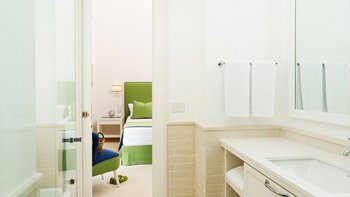 The principal suite features a king-size bed, an elegant en suite bathroom with bathtub, a discreet workspace and a large private balcony overlooking the water. A second master bedroom is equally impressive, with a king-size bed, shower room and balcony, complemented by a striking freestanding bathtub set beside a curved glass wall to fully appreciate the view. Two further bedrooms enjoy sea or garden outlooks, while a fifth king-size bedroom on the lower level offers added privacy, complete with a shower room and kitchenette. An additional bedroom and two further shower rooms complete the accommodation.