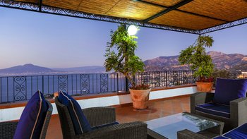 Eine idyllische Villa inmitten der natürlichen Schönheit der Hügel von Sorrent bietet die Villa Vulcano einen unglaublichen Blick über den Golf von Neapel bis zum Vesuv.