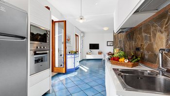 Draußen bietet die Villa eine Reihe von Möglichkeiten, um die natürliche Schönheit der Gegend in vollen Zügen zu genießen. Mit einer Außenküche mit Grill und Pizzaofen, mehreren Terrassen mit Meerblick mit Essgelegenheiten, einem Salzwasserpool und Postkarten-ähnlichen Landschaften vom Dach der Villa ist diese Immobilie perfekt, um die besten italienischen Sonnenuntergänge zu genießen. Der Poolbereich verfügt über Sonnenliegen und Liegestühle zum Entspannen und eine Außendusche, während der Pool selbst auch eine Hydromassagebank hat. Deren Villa liegt direkt oberhalb der gut angebundenen Via Nastro Verde und ist zu Fuß zu einem Restaurant auf der anderen Straßenseite der Villa und nur ein paar hundert Meter von einem beliebten lokalen Restaurant entfernt. Sant’Agata und Sorrento mit einer großen Auswahl an ausgezeichneten Restaurants sind drei bis vier Kilometer entfernt. Das Naturschutzgebiet Punta Campanella ist eine weitere großartige lokale Attraktion, die zum Wandern beliebt ist. Was die nahe gelegenen Strände angeht, so ist Marina Piccola eine ausgezeichnete Wahl, nur vier Kilometer entfernt in Sorrent, während Cala di Puolo nur fünf Kilometer von der Villa entfernt liegt. Ein Bootsverleih kann auch vor Ort über unser Team organisiert werden.