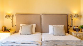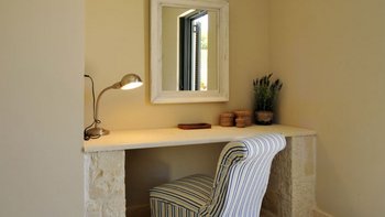Der soziale Raum ist offen gestaltet und umfasst eine Pantryküche, Ess- und Sitzbereiche, wo die eingebauten Sofas mit Kissen in fröhlichen Sonnenfarben gestapelt sind. Dessen Zimmer öffnet sich zur Poolterrasse, ebenso wie das Schlafzimmer im Erdgeschoss, während das Haupt-Doppelzimmer im ersten Stock von seinem eigenen kleinen Balkon aus auf das Meer blickt. Mit WLAN und Klimaanlage im gesamten Gebäude ist das Amphitrite eine ausgezeichnete Wahl für eine Familie oder zwei Paare und teilt sich die gleiche Küsten-Enklave wie die Schwestervillen Arethusa und Nereus. Es könnte zusammen mit einem (oder beiden) für größere Gruppen von Familie oder Freunden gebucht werden.