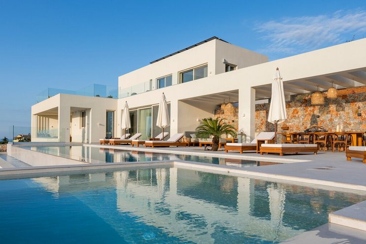 A breathtaking seafront sanctuary where six en-suite bedrooms, a heated infinity pool, and private beaches offer an unforgettable escape on the Cretan coast.
