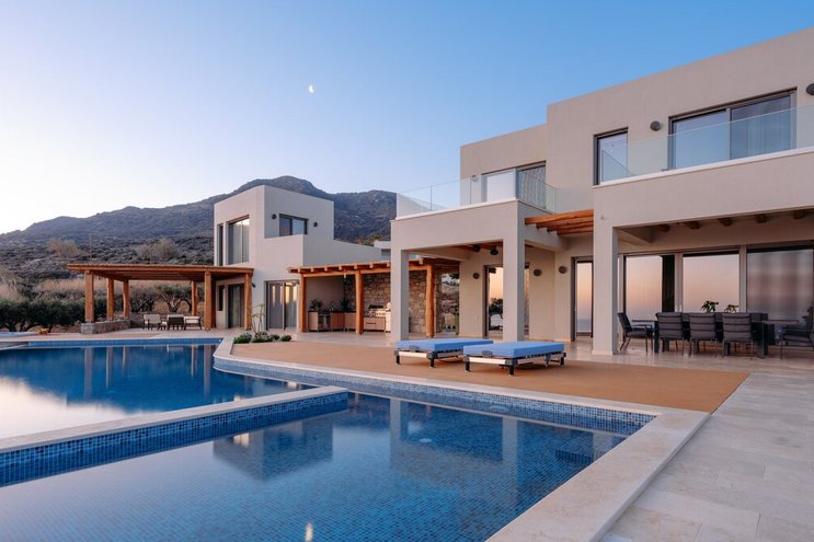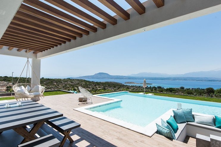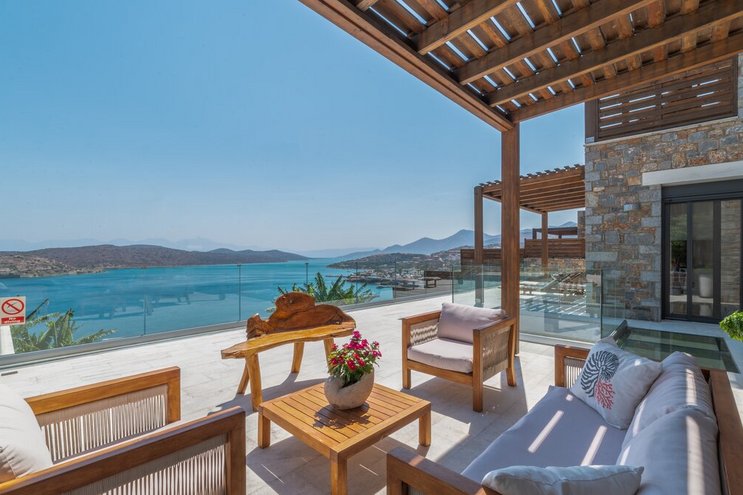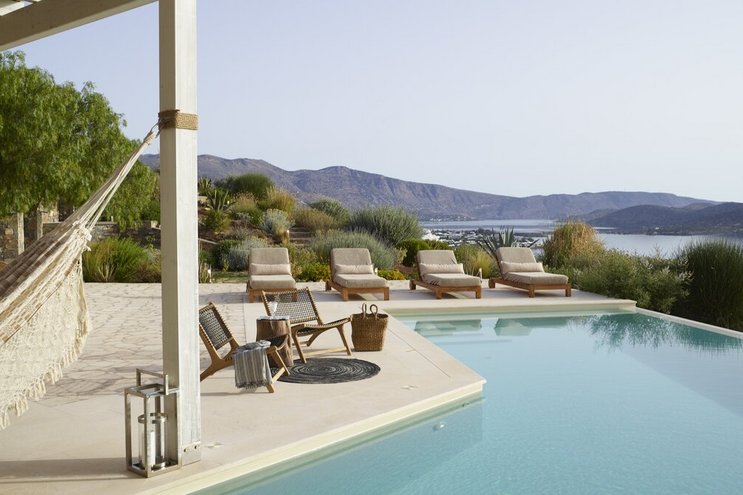 Mit einer unglaublichen Aussicht auf das Meer und die Insel Spinalonga ist die Villa Gaea eine geräumige und moderne Villa für einen Familienurlaub auf Kreta.