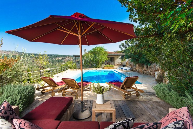 Die helle und geräumige Villa Alayla ist eine moderne und ruhige Unterkunft mit großen Gärten und weitem Meerblick.