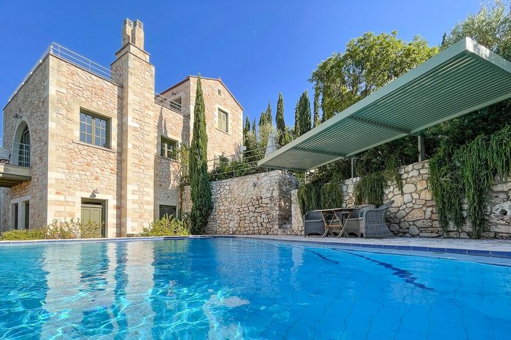 Die Villa Ida ist ein geräumiger Rückzugsort auf einem Hügel in der Nähe von Chania und verbindet traditionellen Charme mit raffiniertem Komfort. Sie bietet Panoramablick, einen beheizten Pool und Platz für 13 Gäste zum stilvollen Entspannen.