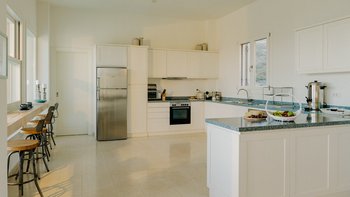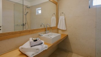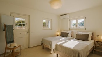 Kyra ist eine geräumige, elegante Villa mit einer ausgezeichneten Auswahl an Wohnbereichen im Freien. Im Innenbereich erwartet Sie ein helles und modernes Wohnzimmer mit einem Schreibtisch und Türen zur Terrasse. Der weiß getünchte Küche/Essbereich ist geräumig und elegant und bietet einen schönen Platz, um mit Freunden oder der Familie zu kochen und zu speisen. Im Erdgeschoss befinden sich auch zwei Doppel- oder Zweibettschlafzimmer, die wunderschön eingerichtet sind und jeweils ein Duschbad haben. Im ersten Stock befindet sich ein schönes Hauptschlafzimmer mit einem bezaubernden Himmelbett, Bad en suite und Zugang zur Terrasse. Im ersten Stock befindet sich auch ein Schlafzimmer mit Doppelbett und Dusche en suite. Im unteren Erdgeschoss befinden sich zwei Doppel- oder Zweibettzimmer mit Dusche en suite, von denen jedes einen bequemen Zugang zum Poolbereich hat. Ein- Waschküchen- und Stauraum vervollständigen diese Ebene.