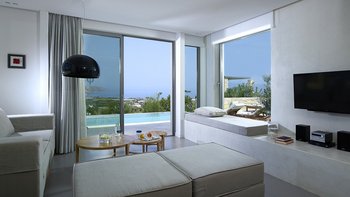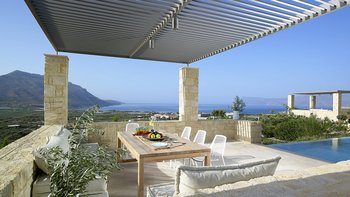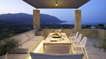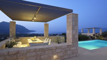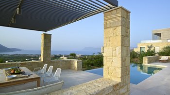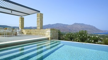 Die Sea Breeze Villa ist ein stilvolles Refugium in Hanglage mit weitem Meerblick und bietet modernen Komfort und ein entspanntes Leben in der Nähe der schönen Westküste Kretas.