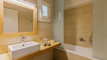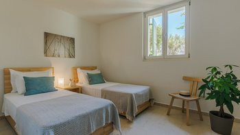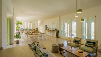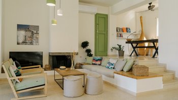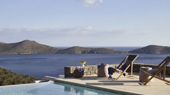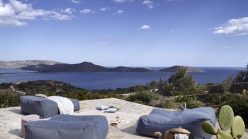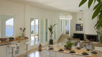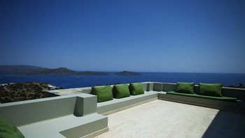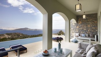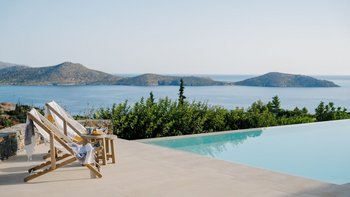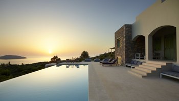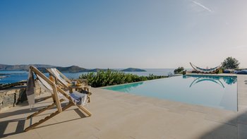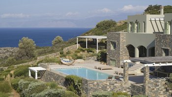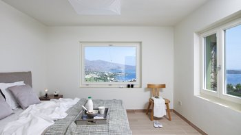 Am Stadtrand von Elounda auf Kreta gelegen, bietet dieses elegante Anwesen einen perfekten griechischen Kurzurlaub für die ganze Familie. Im Erdgeschoss dieser modernen Villa finden die Gäste einen geräumigen Wohn-/Essbereich mit neutraler Einrichtung, einem Kamin und hohen Decken vor. Es gibt sogar einen Arbeitsbereich mit Schreibtisch. Deren Küche ist komplett ausgestattet, mit französischen Türen, die auf eine schattige Lounge-Terrasse mit Zugang zum Poolbereich führen. Deren Erdgeschoss verfügt auch über zwei Schlafzimmer, von denen eines über einen externen Eingang zugänglich ist, und ein Badezimmer en suite und Zugang zur Terrasse. Im ersten Stock befindet sich ein wunderschönes Hauptschlafzimmer mit Himmelbett und eigenem Bad mit Regendusche. Im ersten Stock befindet sich auch ein Doppelschlafzimmer mit Bad en Suite, das über eine Außentreppe erreichbar ist. Von diesem Raum aus haben Sie einen herrlichen Meerblick und Zugang zu zwei hübschen Terrassen.
