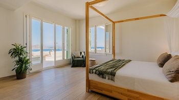 • Schlafzimmer mit Doppelbett (Himmelbett) mit Badezimmer en suite mit Zugang zur Terrasse