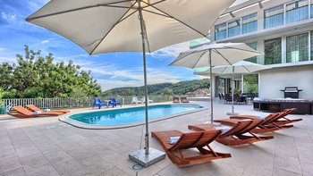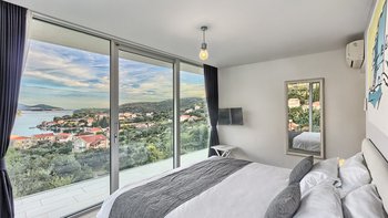 Die Villa Poppy liegt etwas mehr als 1 km vom nächsten Strand entfernt und genießt von ihrer privilegierten Lage in Dubrovnik aus einen herrlichen Meerblick. Dessen moderne Inneneinrichtung zeigt Stil und Komfort gleichermaßen und ist in einer geschmackvollen Farbpalette von kühlen Grautönen und einer Mischung aus Marmorfliesen und grauen Holzfußböden dekoriert. Ideal für große Gruppen. Dessen Layout dieser Villa ist ideal, um im Urlaub Kontakte zu knüpfen, mit einem offenen Wohn- und Essbereich, der bereit ist, die Aussicht zu genießen und von einer modernen Küche serviert wird. Eine lustige Tafelwand enthält nützliche Informationen wie den WiFi-Login und bietet Platz, um Ihren Mitreisenden eine Bewertung zu hinterlassen oder Notizen zu schreiben. Es gibt fünf Doppelschlafzimmer, alle mit eigenem Bad und raumhohen Fenstern, die einen ruhigen Blick auf die Landschaft von Dubrovnik und das Meer bieten. Beginnen Sie Ihren Tag mit einem Training im eigenen Fitnessraum der Villa oder gönnen Sie sich einen Hauch von Verwöhnung in der traditionellen Sauna.