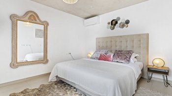Can Santos ist eine fabelhafte ibizenkische Villa inmitten idyllischer, grüner Gärten in ländlicher Umgebung. Im Inneren besticht die Villa durch ein schickes Boutique-Dekor mit einem großen Wohnzimmer, einem eleganten Esszimmer und einer voll ausgestatteten Küche. Deren Hauptgebäude verfügt über fünf schöne Schlafzimmer sowie Zugang zu einer sonnenverwöhnten Außenterrasse und einem Essbereich. Eines dieser Schlafzimmer befindet sich unabhängig im ersten Stock und verfügt über einen direkten Zugang zum Pool und eine private Terrasse. Deren beiden zusätzlichen Nebengebäude bieten die perfekte Lösung für Gäste, die während ihres Aufenthalts etwas mehr Privatsphäre wünschen. Deren erstes verfügt über einen separaten Zugang zu zwei Schlafzimmern mit eigenem Bad, einer offenen Grundriss Küche und einem Wohnzimmer. Dieser Nebengebäude verfügt auch über eine private Terrasse und einen Parkplatz. Das zweite Nebengebäude verfügt über zwei Schlafzimmer, ein Bad und eine eigene Terrasse.