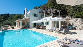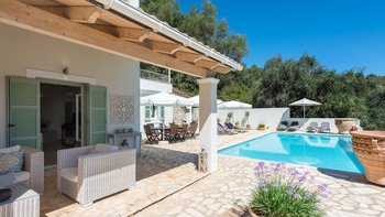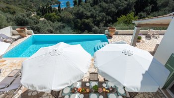 Vom beeindruckenden Infinity-Pool aus bietet das schöne Angeliki einen atemberaubenden Blick über die Bäume in Richtung St. Stephano und ist nur einen kurzen Spaziergang vom Dorf entfernt.