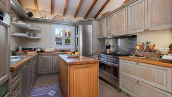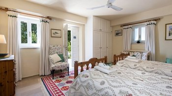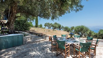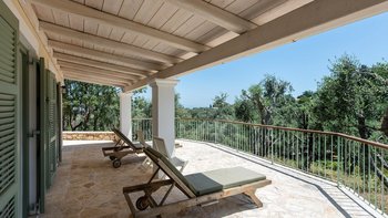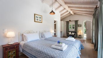 Diese beliebte Familienvilla liegt auf einem Hügelkamm und bietet einen ruhigen Blick über Olivenhaine bis hin zum Ionischen Meer. Sie ist mit farbenfrohen Teppichen und Kissen, mit Büchern gefüllten Regalen und einer vielseitigen Sammlung von Bildern und Artefakten ausgestattet. Im klassischen korfiotischen Stil verfügt das Haus über weiß getünchte Wände und waldgrüne Fensterläden, eine liebevoll möblierte Veranda mit blumengefüllten Töpfen und Pflanzgefäßen und Gärten mit hübschen Terrassen und ruhigen Ecken zum Essen im Freien oder Entspannen im Schatten der Blätter; alles erinnert an ihre Ursprünge aus dem 18. Jahrhundert.Aber die sorgfältige Restaurierung hat moderne Einrichtungen hinzugefügt, darunter einen 10-Meter-Infinity-Pool, der auf einer sonnigen Terrasse mit Meerblick liegt. Mit einer sehr entspannten Atmosphäre verfügt die Villa über vier Schlafzimmer, jedes mit eigenem Bad und einem charmanten Wohn- / Esszimmer mit Zugang zu Außenterrassen. Kokkokila ist über eine ruhige Straße von der Küste aus erreichbar und liegt nur 7 km vom Hafen von St. Stephano, dem Avlaki-Strand und dem Nachtleben von Kassiopi entfernt.