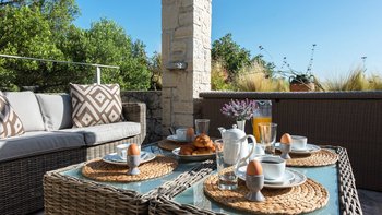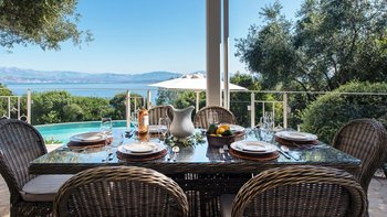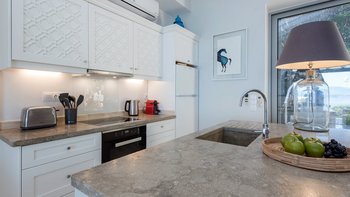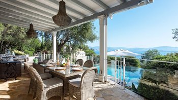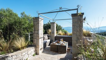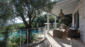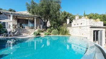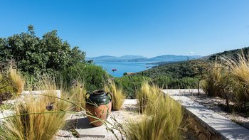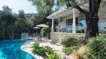 Eingebettet in versilberte Olivenhaine an einem ruhigen Küstenhang bietet diese ausgezeichnete Luxusvilla Meerblick vom außergewöhnlichen Pool aus, alles in einer ruhigen Umgebung.