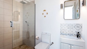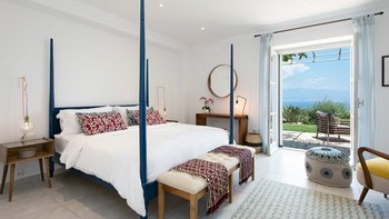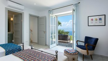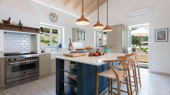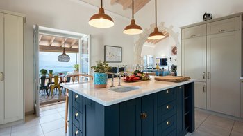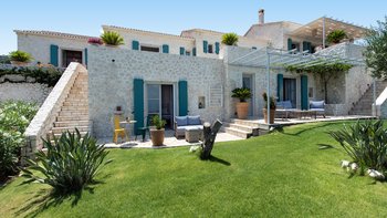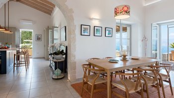 Es gibt einen gut gestalteten Fluss durch das gesamte Anwesen, zusammen mit einem wundervoll dekorierten Interieur. Im Erdgeschoss geht der OFFENER GRUNDRISS Wohnbereich der Villa intuitiv in die Küche über, an die sich ein stabiler steinerner Torbogen anschließt, der den freien Lichtfluss von Raum zu Raum fördert. Dieser Bereich verfügt über große Fenster und angrenzende Terrassen, so dass die Gäste den ganzen Tag über die sonnenverwöhnte Aussicht auf Korfu genießen können. Denen fünf geräumigen Schlafzimmer verfügen jeweils über ein eigenes Bad und eine eigene Aussicht, da sie sich jeweils auf Panoramaterrassen öffnen und direkten Zugang zum Poolbereich bieten, so dass die Gäste den Tag in völliger Ruhe beginnen und beenden können. Unten auf der Gartenebene gibt es ein einladendes Home-Fitnessstudio und ein Spielezimmer für die Gäste.