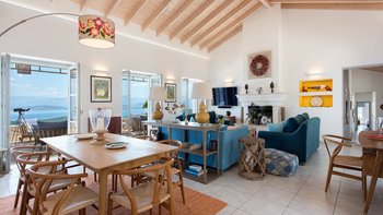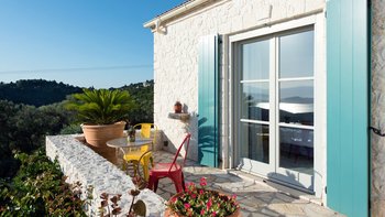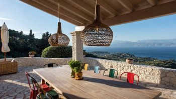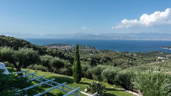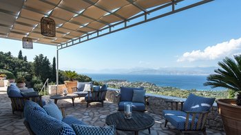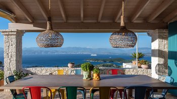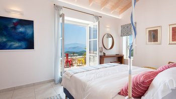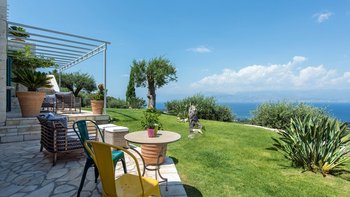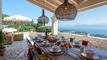 Oleander ist eine Villa mit fünf Schlafzimmern inmitten von Olivenhainen an der Nordostküste Korfus und bietet einen magischen Blick auf das Meer auf die donnerspaltenden Gipfel der albanischen Ceraunischen Berge, die über die Straße von Korfu zu sehen sind. Mit geräumigen umlaufenden Terrassen und ausgezeichneten Essbereichen im Freien ist diese Villa für den geselligen Reisenden konzipiert, was sie ideal für Familien und kleine Gruppen von Freunden macht. Es gibt sogar eine Katze in der Villa, genannt Feta.
