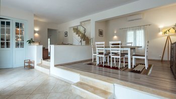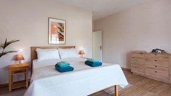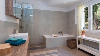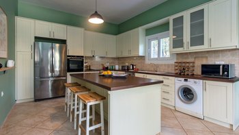 Dieses zweistöckige Haus in Kassiopi befindet sich in zentraler Lage in Korfus charmantem Fischerdorf. Des Anwesen ist geräumig, frisch und modern – und eine gute Wahl für eine Familie, mit drei großzügigen Schlafzimmern, die 6 Schlafmöglichkeiten bieten. Jedes der Zimmer verfügt über den Luxus eines eigenen Bades; Die Master-Suite verfügt über eine separate Badewanne und eine Regendusche, während ein weiteres der Doppelzimmer zu einem Zweibett gemacht werden kann, wenn es besser passt. Jedem Zimmer ist sehr modern, in neutralen Farbtönen für maximales Licht eingerichtet und mit Zugang zu einer möblierten Außenterrasse für zusätzlichen Genuss. Die grauen und weißen Farbtöne setzen sich in den stilvollen Wohnbereichen im Erdgeschoss fort – entworfen mit maximalem Komfort, gibt es ein sehr geräumiges Wohnzimmer mit zwei separaten Sofas, einem Sessel und Fenstertüren, die auf die PRIVATER POOL Terrasse führen. Dessen Erdgeschoss ist mit einem modernen Esszimmer und einer High-Spec-Küche komplettiert, mit viel Platz zum Schneiden und einer wunderschönen zentralen Insel, es gibt auch Zugang zu einer zusätzlichen Terrasse im Freien. Draußen verfügt die Villa über einen großen privaten Swimmingpool und es stehen Liegestühle und Hüpfburgen zur Verfügung. Villa Abelia ist nur einen kurzen Spaziergang von den Bars und Restaurants in Kassiopi entfernt, aber für eine Abwechslung gibt es Tavernen und Wassersportmöglichkeiten in Avlaki, nur 2,2 km entfernt. Zwei Kiesstrände (Soukia und Kalamionas) sind beide zu Fuß von der Villa entfernt.