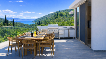 Hoch oben in den Hügeln oberhalb von Kassiopi gelegen, bietet die Villa Nessya einen atemberaubenden Blick über das Ionische Meer bis hin zu den weit entfernten albanischen Bergen. Entworfen, um das Beste aus dieser bemerkenswerten Lage zu machen, bringen riesige Glasscheiben und breite Schiebetüren Licht in jede Ecke, während sie eine sich ständig verändernde Meereslandschaft einrahmen.