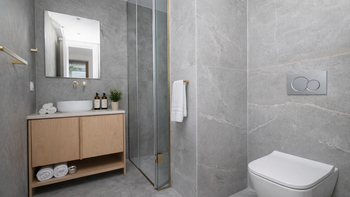 Acht sorgfältig eingerichtete Zimmer für bis zu 18 Personen bieten Flexibilität für Familien mit mehreren Generationen oder große Gruppen von Freunden. Auf der Eingangsebene befinden sich fünf Zimmer mit Bad, die direkt zum Garten führen, sowie ein Zweibettzimmer, das sich ideal für Kinder eignet. Im unteren Erdgeschoss befinden sich zwei luxuriöse Suiten mit Jacuzzi-Badewannen, separaten Duschen und Sitzbereichen. Auf dieser Ebene befinden sich auch ein Kinoraum, ein Fitnessraum, ein Massageraum und eine weitere voll ausgestattete Küche, die einen in sich geschlossenen Raum für Entspannung oder ein unabhängiges Leben schafft.
