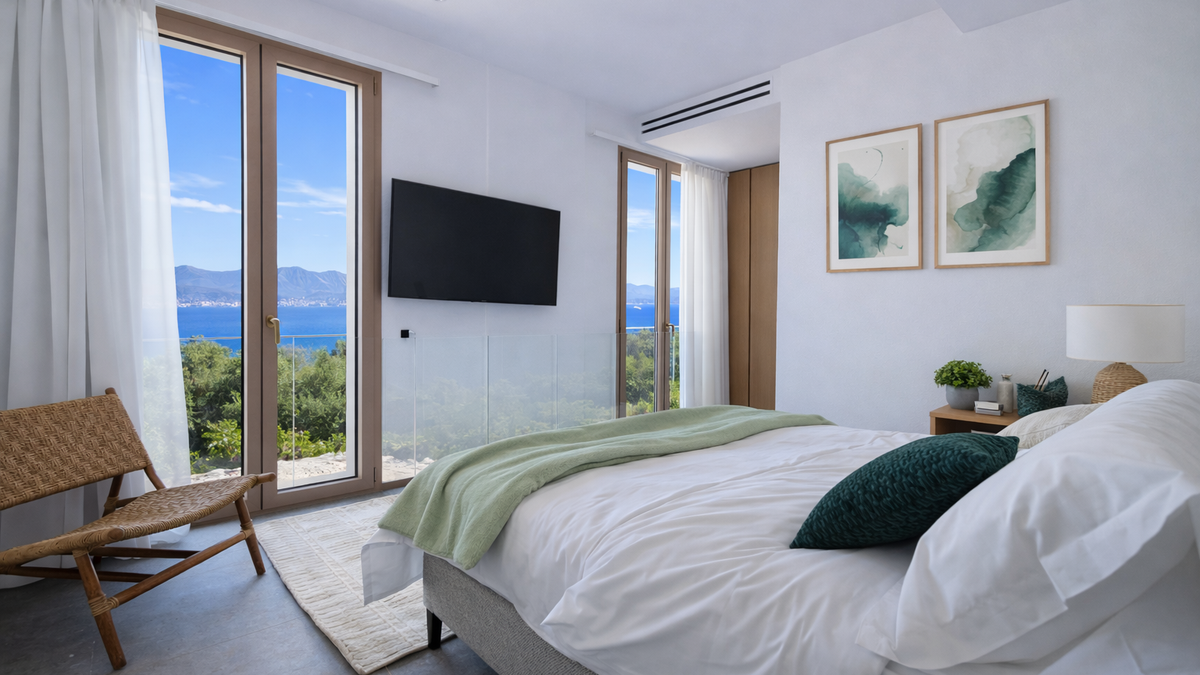 A sleek, sea-facing sanctuary above Kassiopi, Villa Nessya pairs far-reaching coastal panoramas with superb entertaining spaces, offering privacy and effortless comfort for large groups.