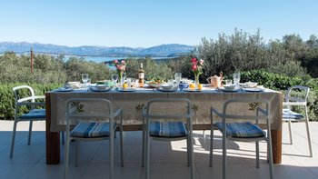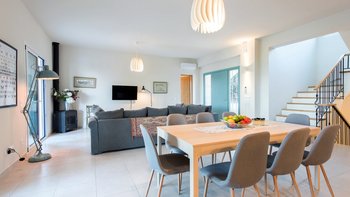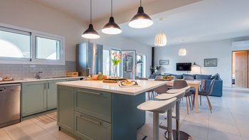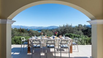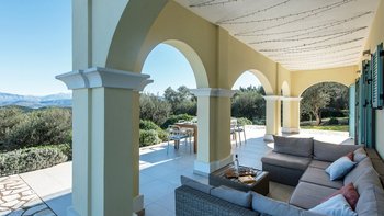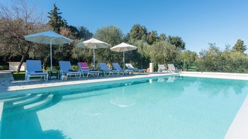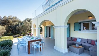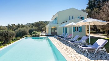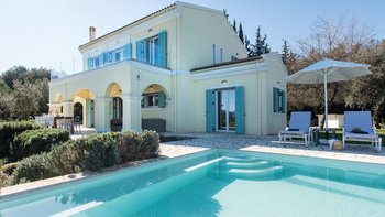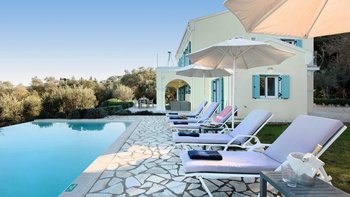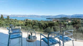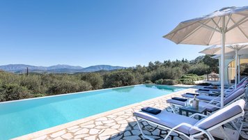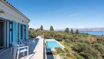 Mit herrlichem Blick auf das Meer und viel Platz drinnen und draußen, ist die Villa Nisi eine atemberaubende Villa in der Nähe des pulsierenden Kassiopi.
