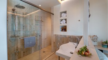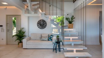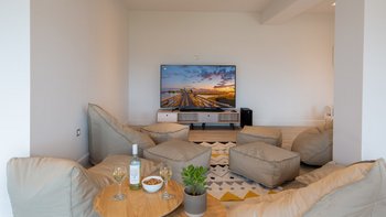 Die Villa Rodi ist ein atemberaubendes Anwesen, das mit viel Liebe zum Detail entworfen wurde – von den himmelblauen Fensterläden, die die Fenster einrahmen, bis zu den auffälligen Wänden in jedem der Schlafzimmer; sein cooles und modernes Farbschema fließt nahtlos durch die Villa. Dessen Erdgeschoss ist OFFENER GRUNDRISS, so dass es schön und geräumig ist. Es gibt einen großen Wohnbereich mit einem bequemen Ecksofa, einer voll ausgestatteten monochromen Küche mit Frühstückstheke und einem separaten Essbereich. Im Haupthaus gibt es vier fabelhafte Schlafzimmer mit Bad auf zwei Etagen, die alle ihren eigenen Balkon und einen atemberaubenden Blick hinunter auf St. Stephano und über das Meer haben. Das Nebengebäude (das von außen zugänglich ist, so dass es vollkommen privat ist) beherbergt zwei weitere Zweibett-Schlafzimmer, beide sind en suite und eines hat seine eigene praktische kleine Miniküche; es gibt auch ein Spielzimmer mit einem großen Fernseher und vielen bequemen Sitzgelegenheiten.