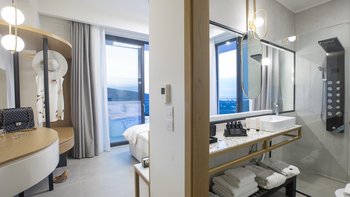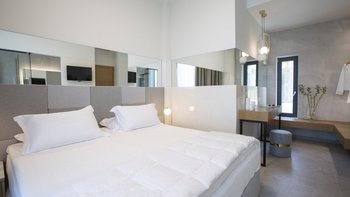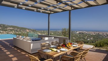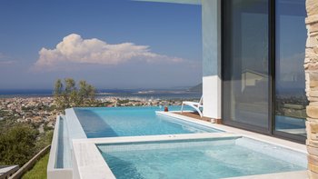 Der Außenbereich von Calliope ist ideal für das Leben im Freien konzipiert; ein Esstisch wird von einer Außenküche und einem eingebauten Grill sowie einem separaten Bereich zum Entspannen im Schatten serviert. Am Rande der geräumigen Terrasse gibt es einen sehr einladenden Salzwasser-Infinity-Pool und einen separaten Jacuzzi (auf Anfrage beheizbar), die beide einen ruhigen Blick über den Hügel und hinunter zum Meer bieten. Calliope und ihre Schwestervilla Tiana befinden sich in einer fantastischen Lage, nur 3 km von der Stadt Lefkada entfernt, wo Sie fabelhafte Restaurants am Wasser und tolle Einkaufsmöglichkeiten finden können.