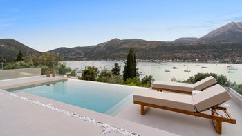 Äußerlich bildet der Infinity-Pool das Herzstück der Villa, deren Wasser mit dem fernen Meer zu verschmelzen scheint und eine Illusion grenzenloser Schönheit schafft. Mehreren Terrassen bieten vielfältige Räume für Mahlzeiten im Freien, Sonnenbad und Kontemplation. Deren Umgebung bietet zahlreiche Attraktionen: Der Desimi-Strand ist nur vier Kilometer entfernt, während das pulsierende Zentrum von Nydri 9 Kilometer entfernt ist. Denen charmanten Restaurants von Geni sind nur 400 Meter zu Fuß entfernt und bieten den Gästen einen authentischen Einblick in das lokale Leben. In Kombination mit den Schwesterhäusern Lethia und Olea können größere Gruppen ein umfassendes Inselerlebnis genießen.