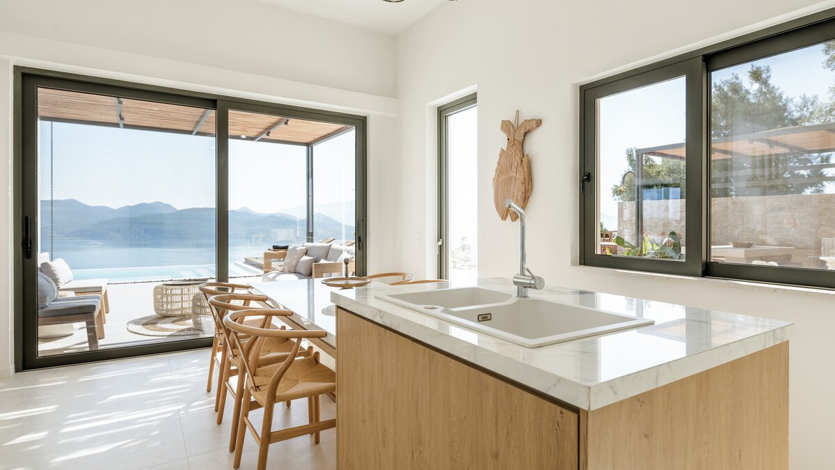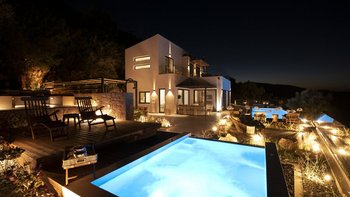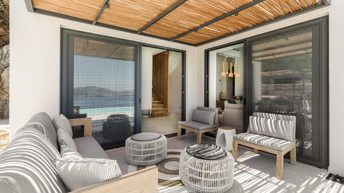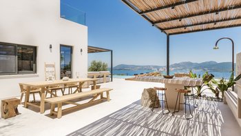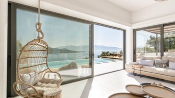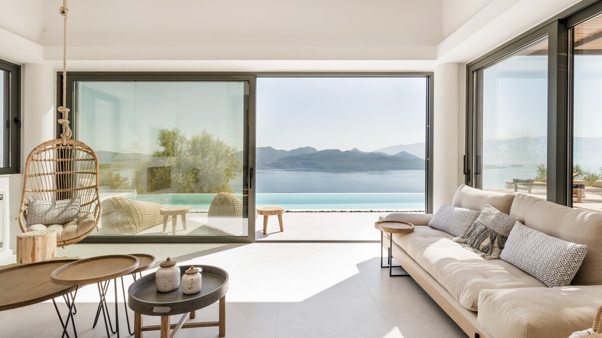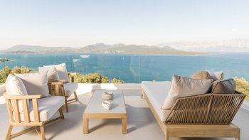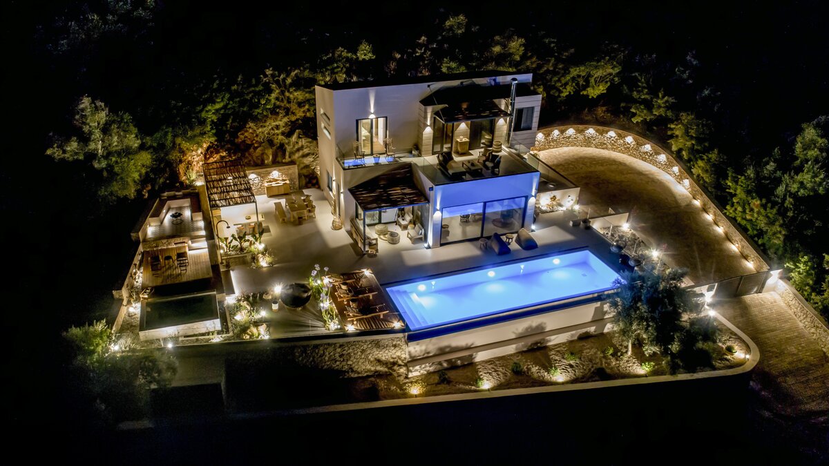 Perched atop a lush hill in Nikiana, Villa Agapi offers breathtaking panoramic views over the Ionian Sea and nearby islands, blending modern comfort with natural elegance for the perfect Lefkadian escape.