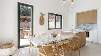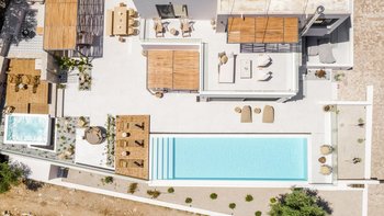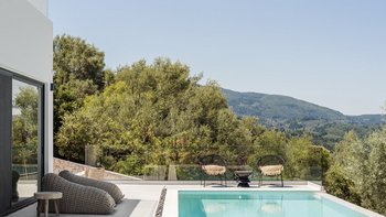 Perched on the highest point of Nikiana, on the eastern coast of Lefkada, Villa Agapi enjoys panoramic views over the surrounding islands and the sparkling Ionian Sea. Set atop a lush green hill, this villa combines contemporary design with natural elegance, creating an inviting space for summer escapes. The villa was designed with both comfort and style in mind, featuring thoughtful indoor and outdoor spaces that take full advantage of its elevated position.